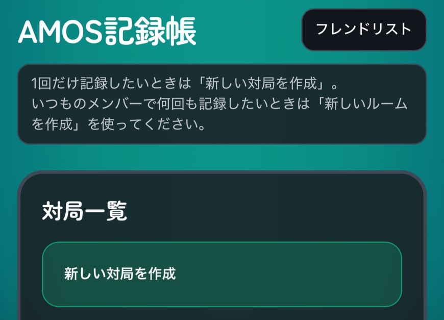 仲間とルームを作成し、対局スコアを入力することで対局履歴を保存することができます。